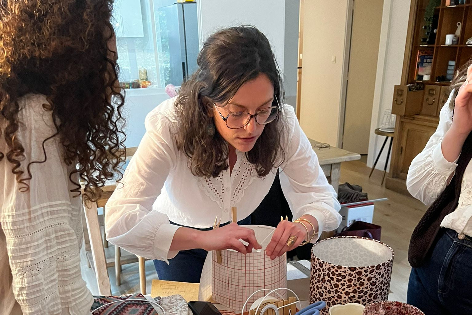 Lors de cet atelier, je les guide pas à pas pour fabriquer leur propre abat-jour, dans une ambiance conviviale et pleine de bonne humeur.