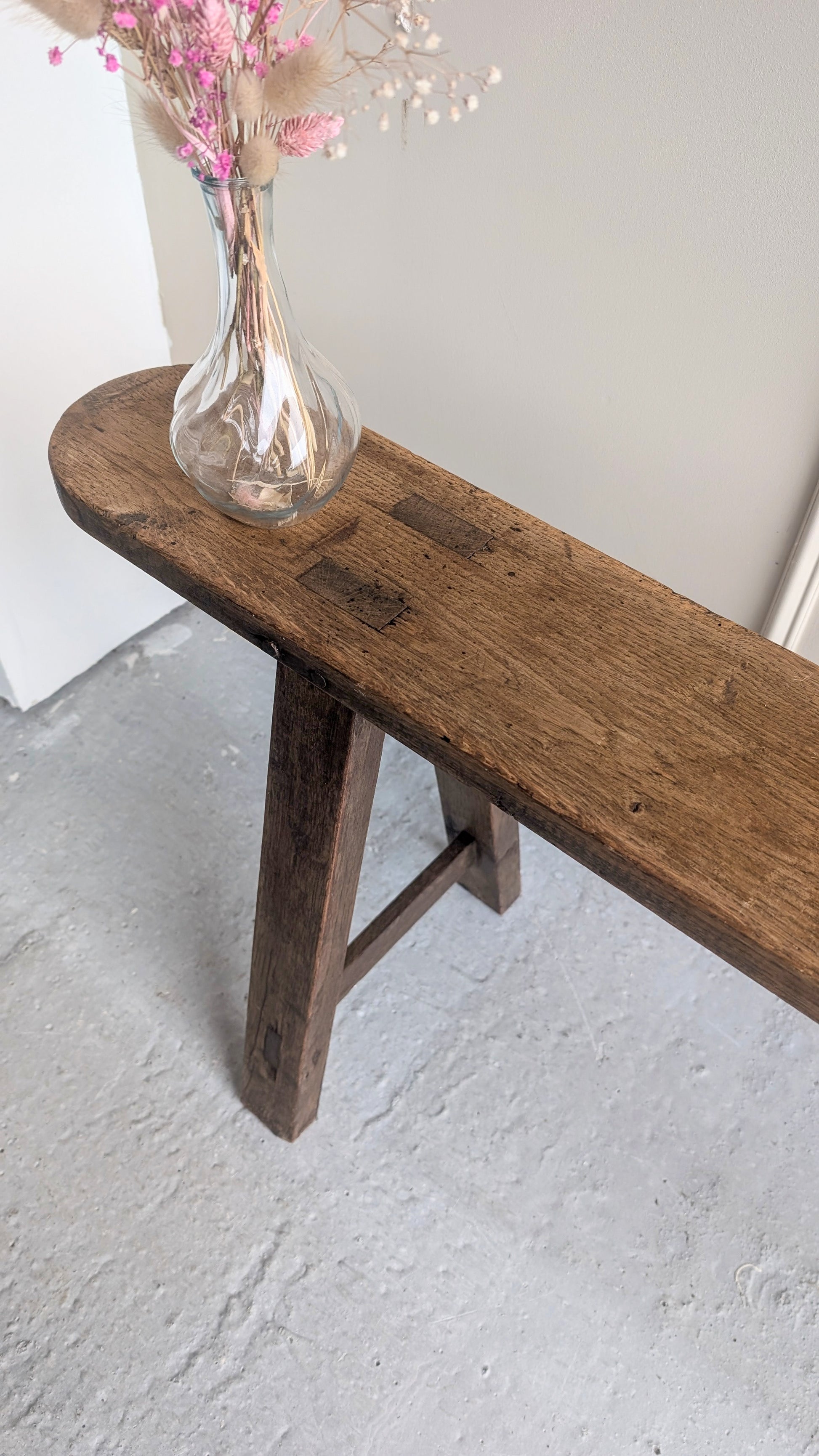 À l’atelier, ce banc a été soigneusement nettoyé et traité. Il est stable