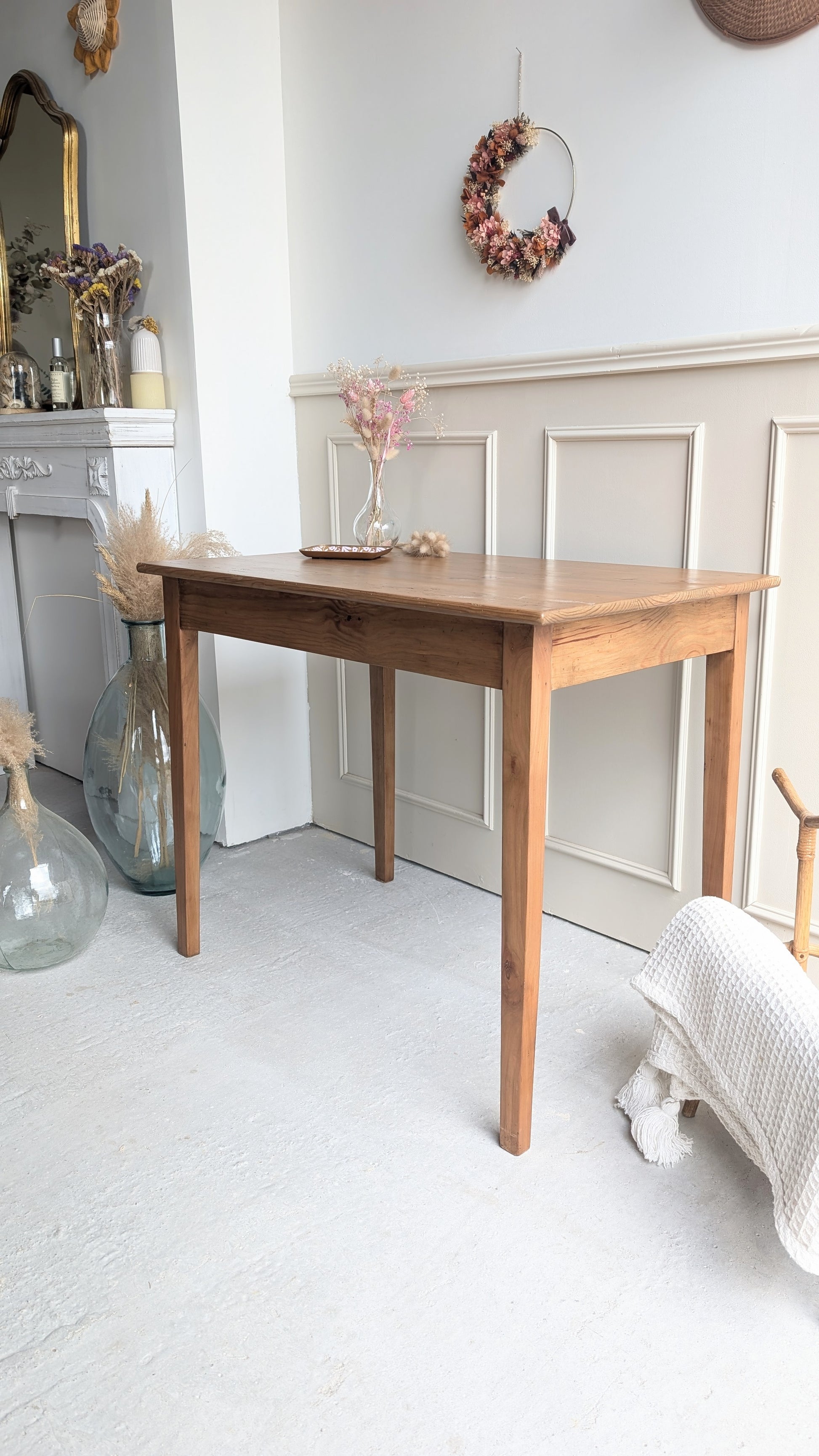 Table d'appoint en pin et ses pieds fuselés. En bureau, en coiffeuse, en console, elle trouvera facilement sa place dans votre intérieur.