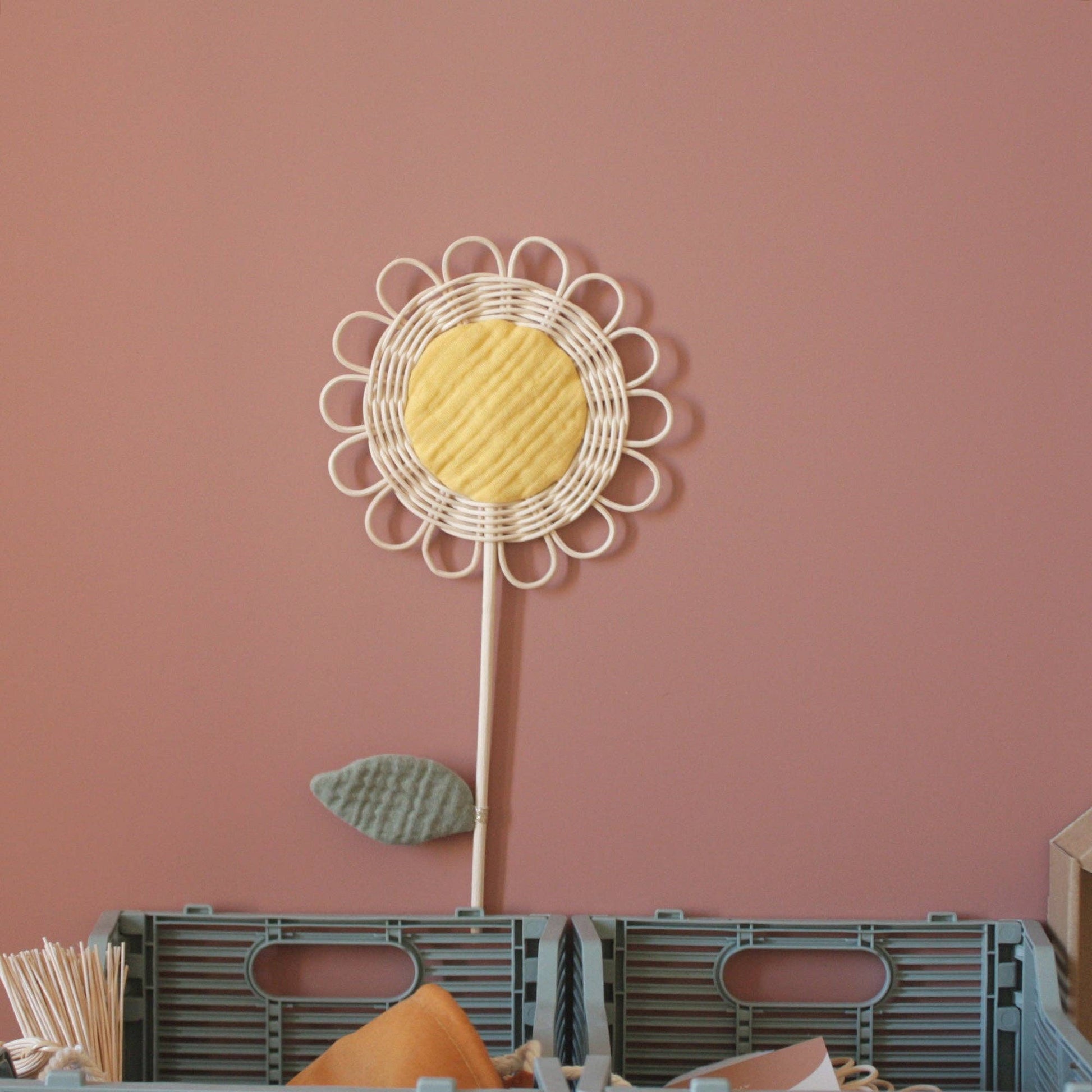 Cette fleur en rotin et tissu apportera une touche bucolique à votre intérieur, sur vos murs ou vos étagères. La forme des pétales évoque des marguerites. Associez-les en mélangeant les coloris et les styles