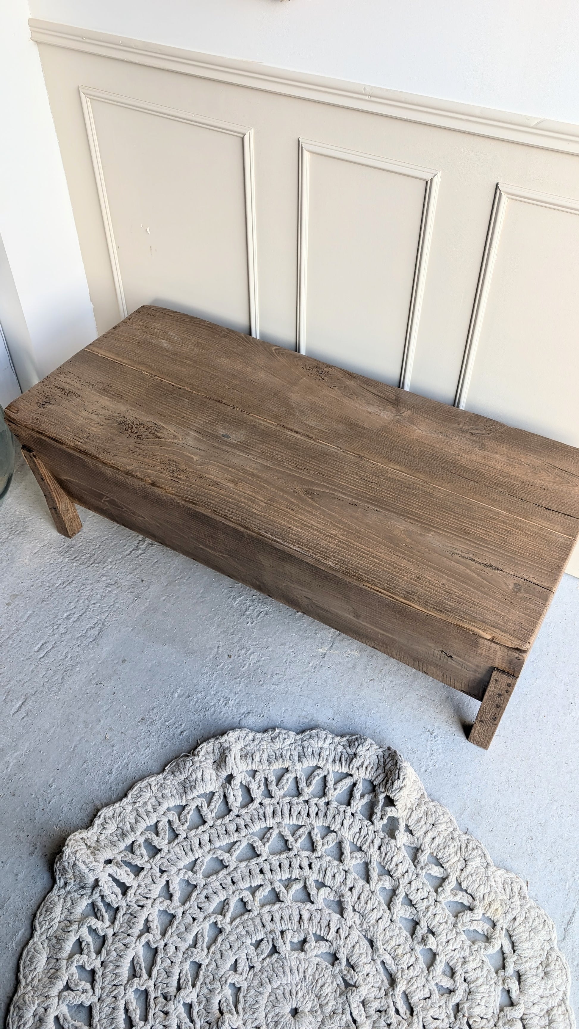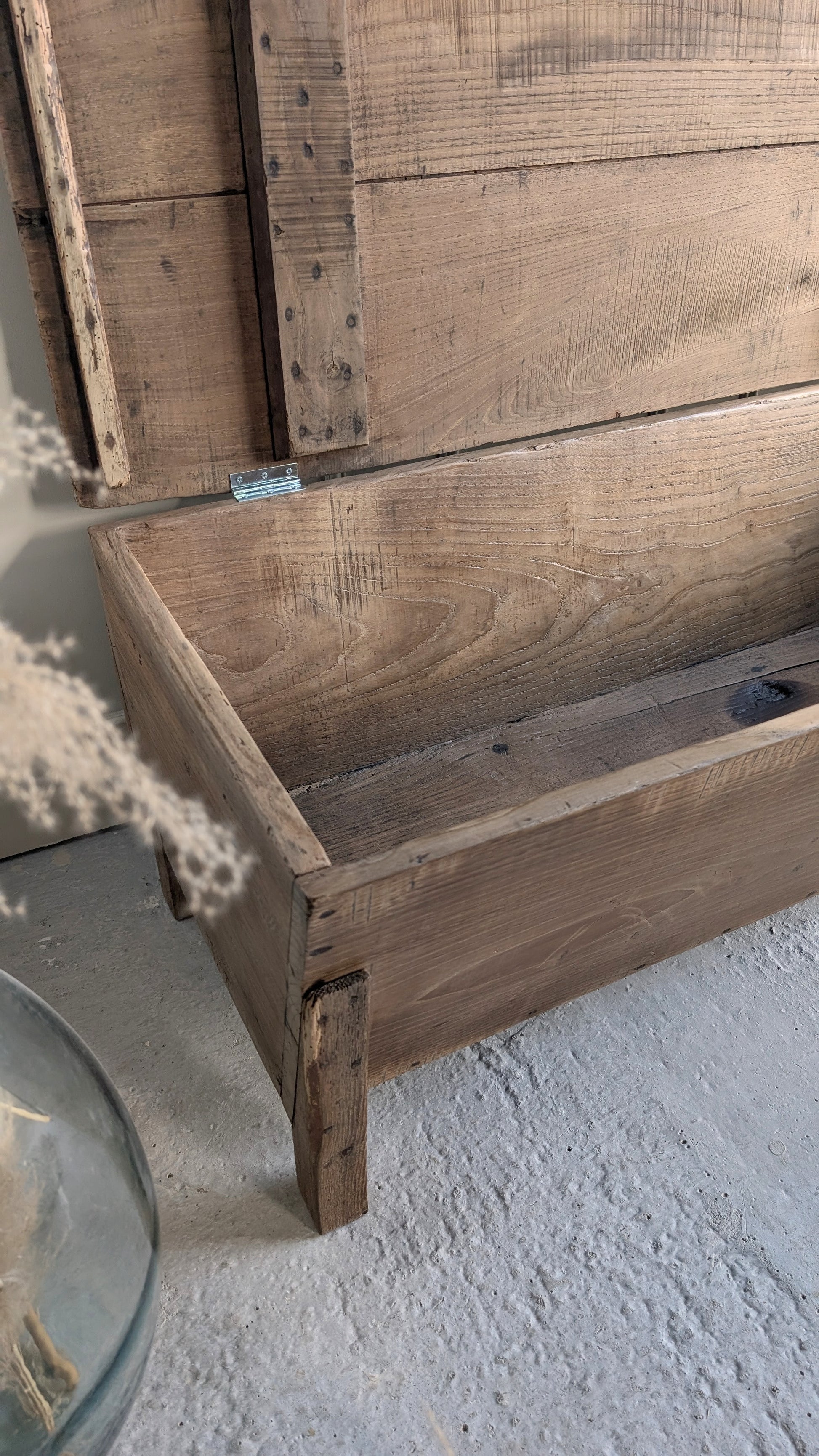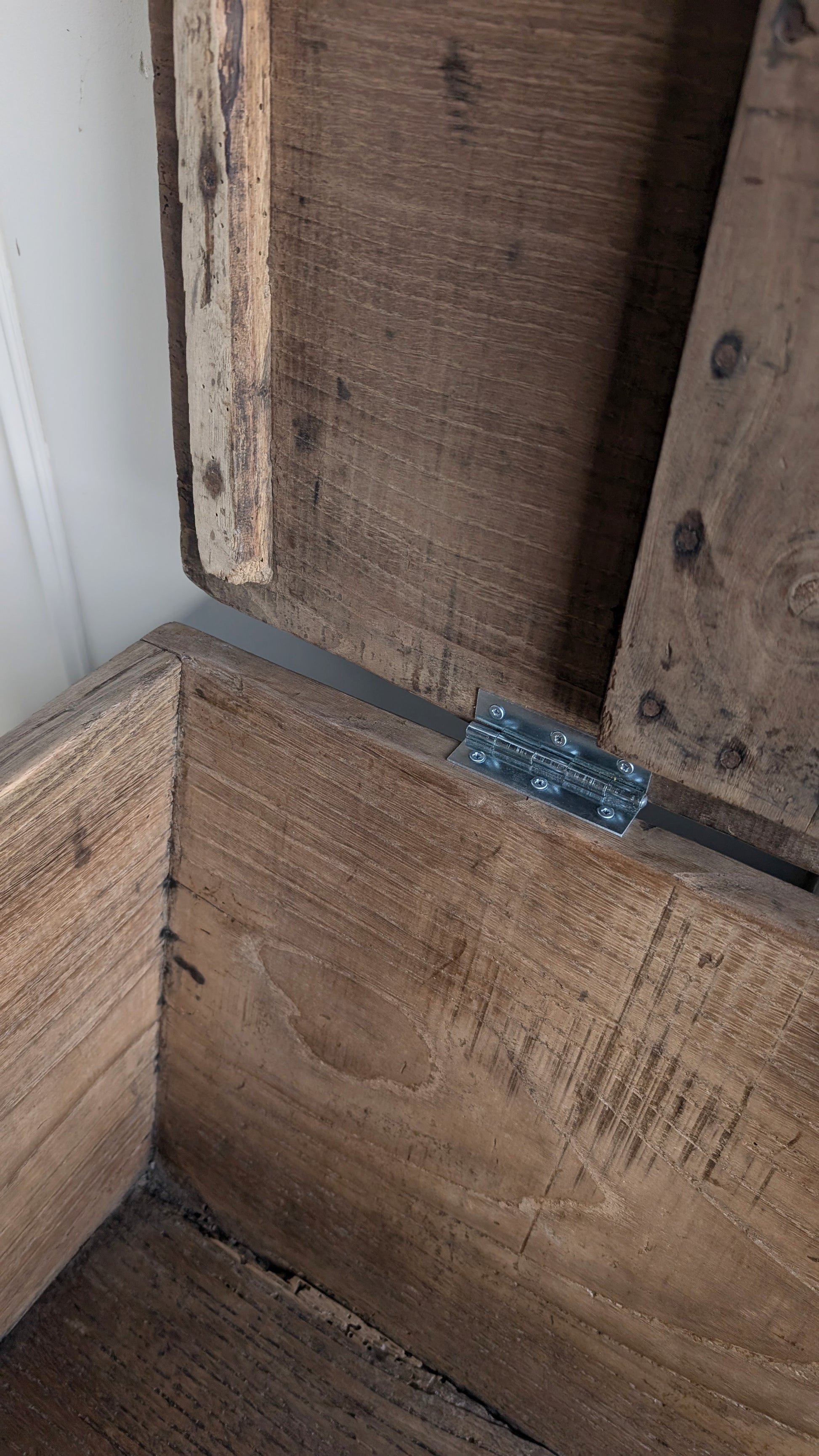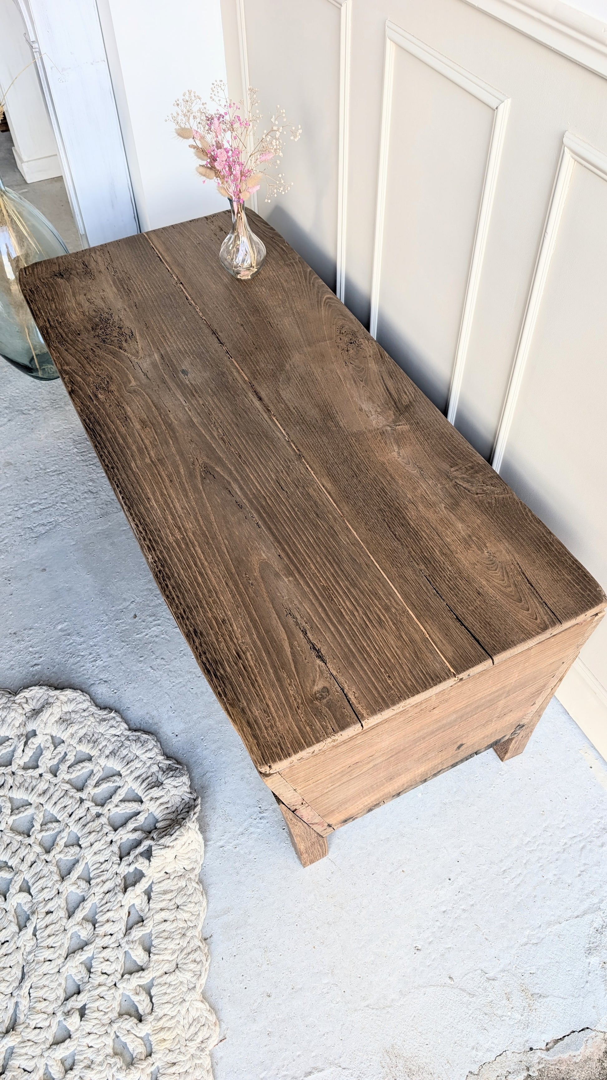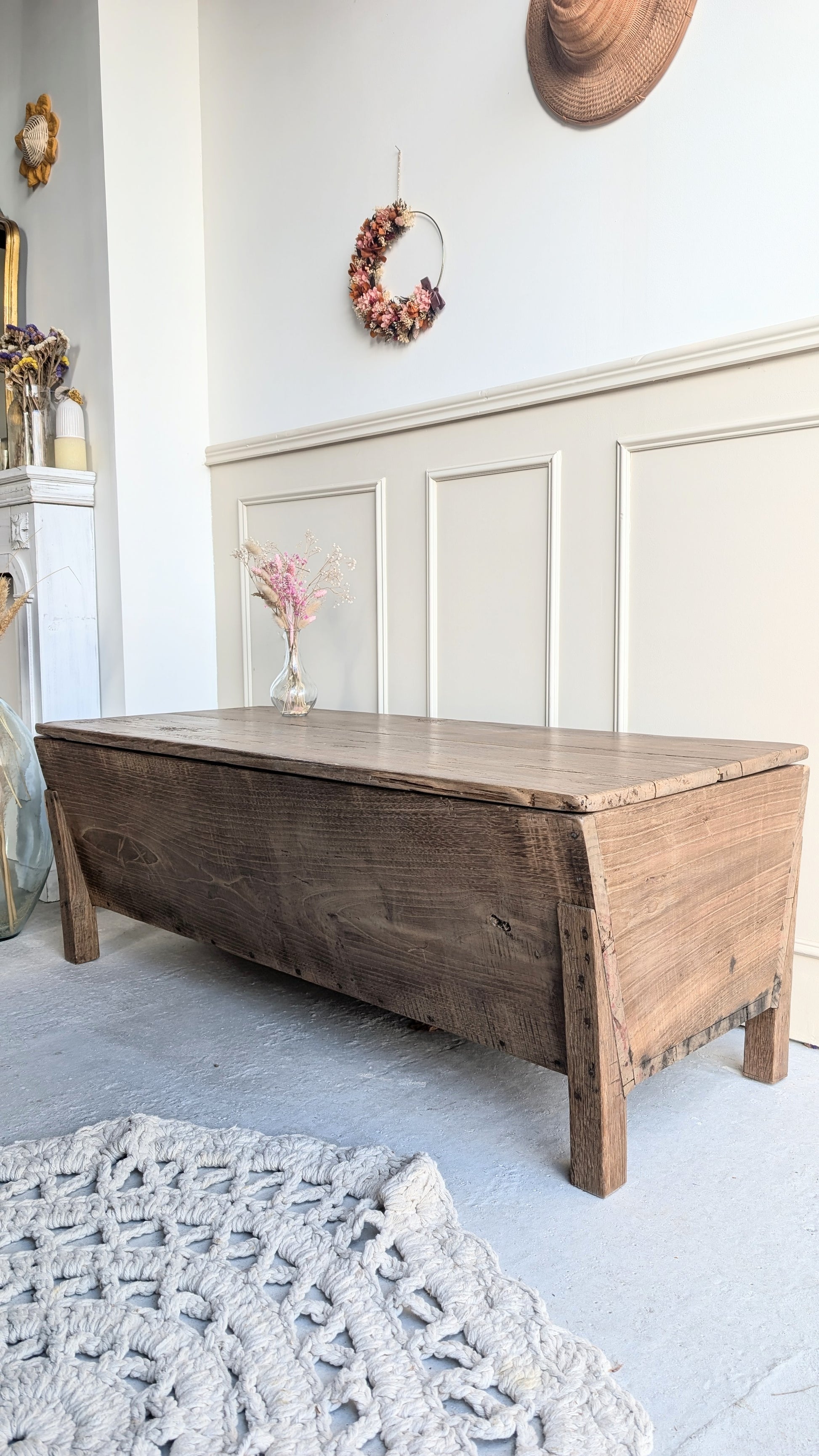 Pièce unique et pleine de caractère, cette maie ancienne a été entièrement restaurée à l’atelier : nettoyée, poncée, traitée et protégée, avec des charnières neuves pour plus de praticité.
