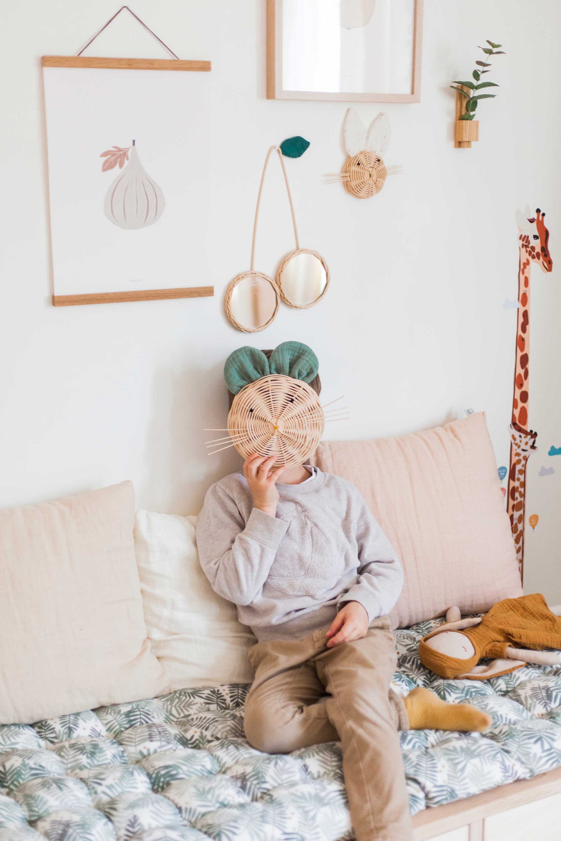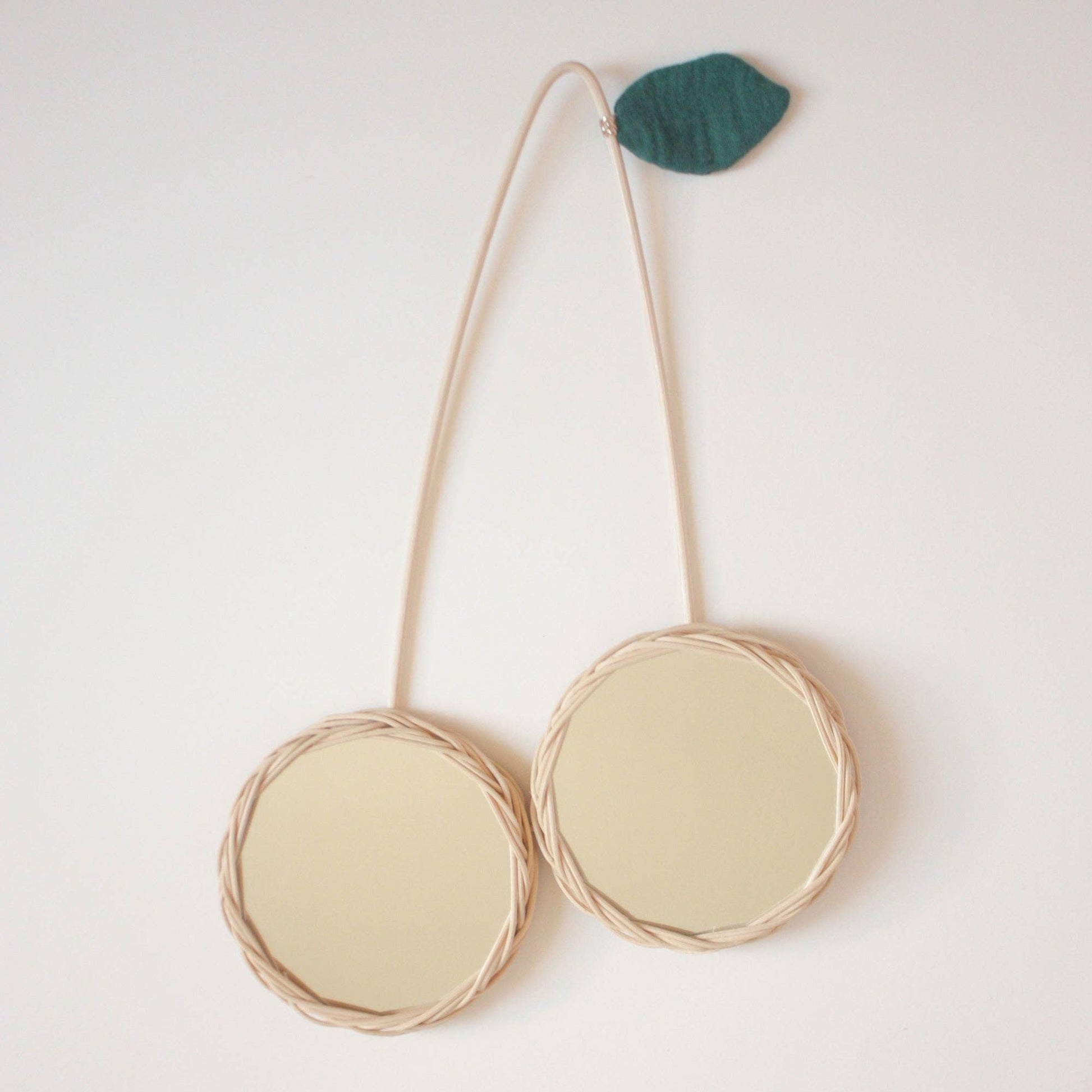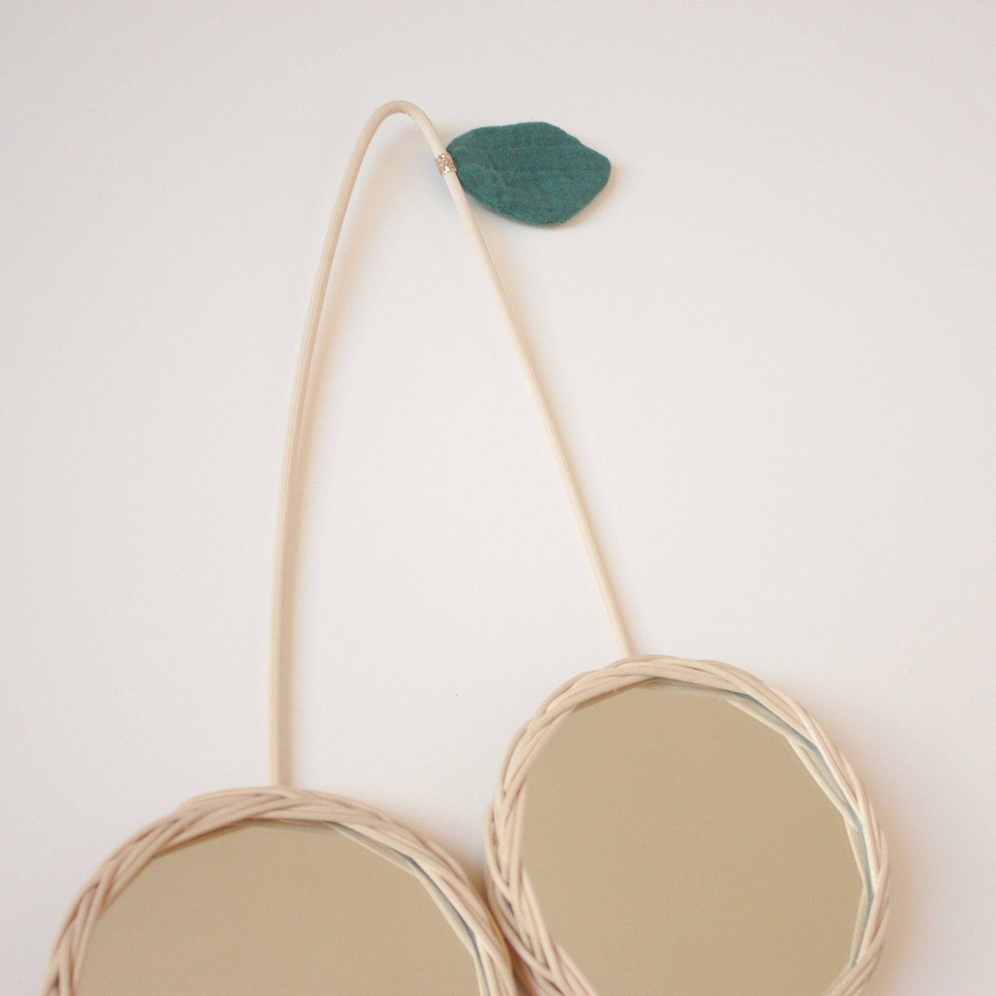 Ce petit miroir cerise en rotin apportera une touche de poésie à votre décoration murale, tout en restant dans un style minimaliste. La feuille est réalisée dans une gaze de coton. Ce miroir se marie très bien avec nos petites fleurs "capucine"