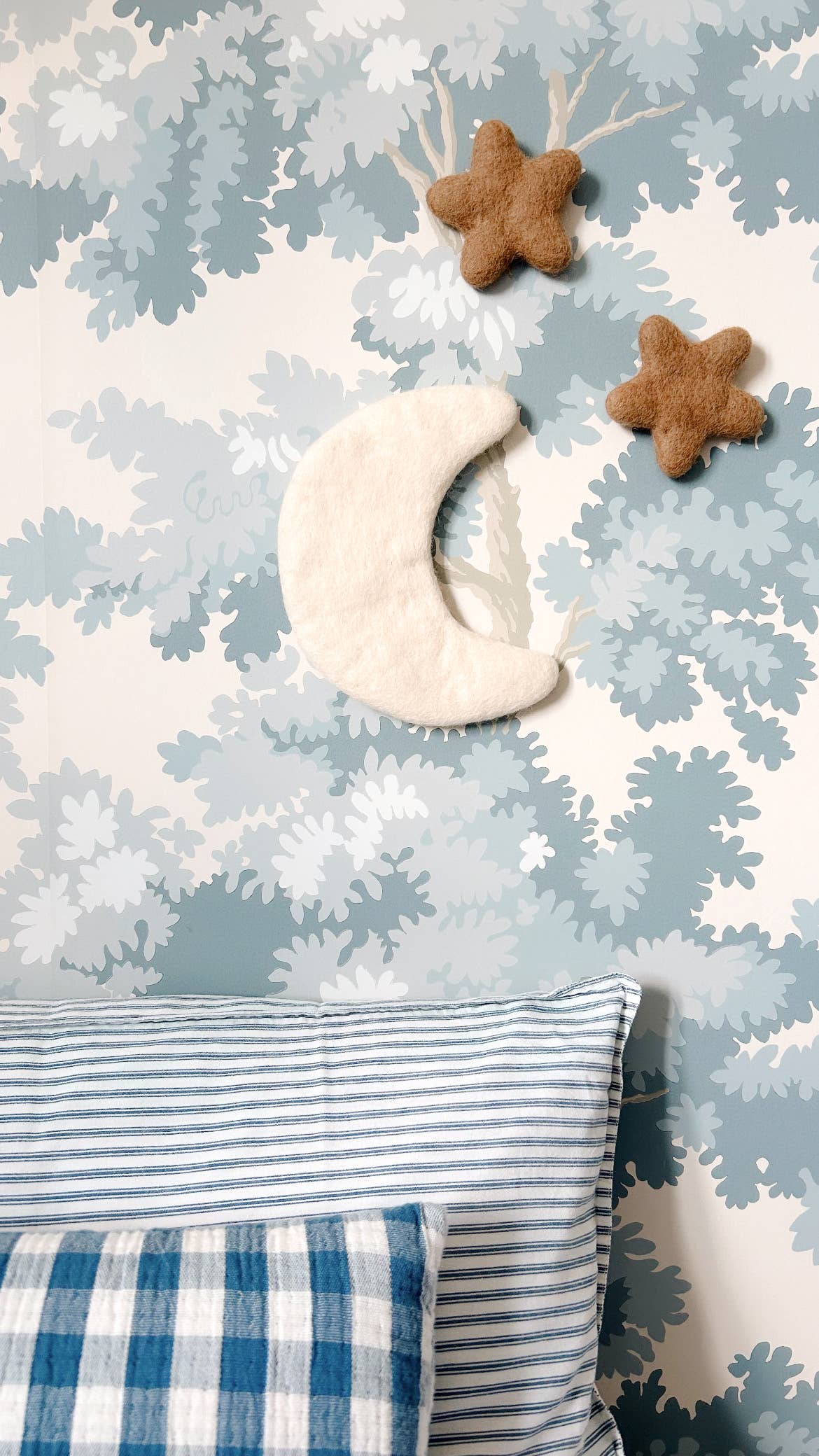 Créez une ambiance douce et poétique dans la chambre de votre enfant avec ces décorations murales en laine feutrée. Parfaites pour compléter la collection Étoiles et Lunes, elles apportent une touche bohème et minimaliste
